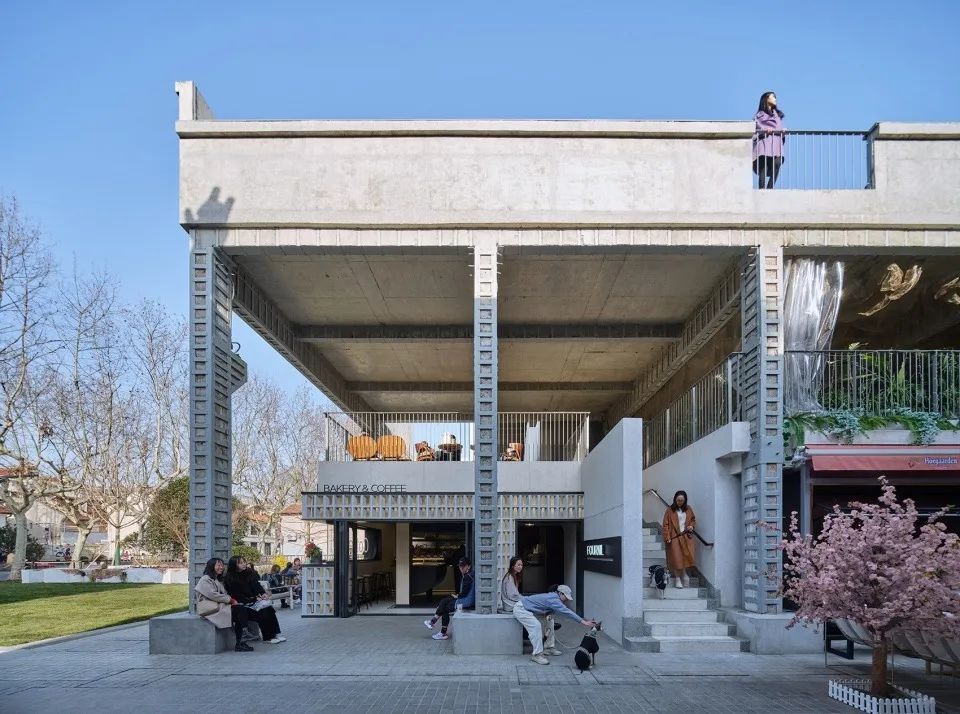 園區(qū)內(nèi)擁有豐富的建筑類別,“樂園式”的動線設(shè)計理念讓消費者獲得不錯的體驗。基地內(nèi)原有江蘇路街道衛(wèi)生服務(wù)中心遷出,菜場功能得到保留并優(yōu)化升級,不斷引入商業(yè)業(yè)態(tài),如餐吧、零售、輕餐、跨界集合店等,打造小資生活方式,將商業(yè)與社區(qū)生活相融合。